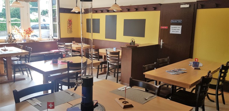 Ob beim Znüni, Mittagessen oder auch zum Abendessen – hier fühlen Sie sich sicher jederzeit wohl. Unser Restaurant ist ideal für Familienanlässe, Fimenanlässe oder für Hochzeitsapéros. Der Saal ist bestens geeignet für Gesellschaften von bis 30 Personen auch unsere Terrasse mit 40 Personen ist sehr gut geeignet für Anlässe. Wir bieten alles im Take away an! Wir machen alles bereit und Sie holen es ab.